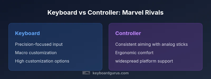 According to Keyboard Gurus, the choice between a keyboard and a controller isn't just about hardware—it's about how input maps to in-game actions, response timing, and your personal playstyle. For a fast-paced brawler like Marvel Rivals, the right input method can influence combo execution, evasion, and target switching. In this section we establish the scope: we evaluate input devices for Marvel Rivals across PC and console setups, with emphasis on precision, consistency, and comfort. We also acknowledge that players may mix devices on PC, and that platform limitations can affect key mapping and latency. The central question many players ask is is keyboard or controller better for marvel rivals, and the answer depends on your main goals: raw speed and accuracy versus ease of use and long sessions. Keyboard Gurus analysis emphasizes that both devices have unique strengths; the optimal choice often comes down to your preferred control schema, project constraints, and how you balance beginner-friendly ergonomics with high-skill potential.