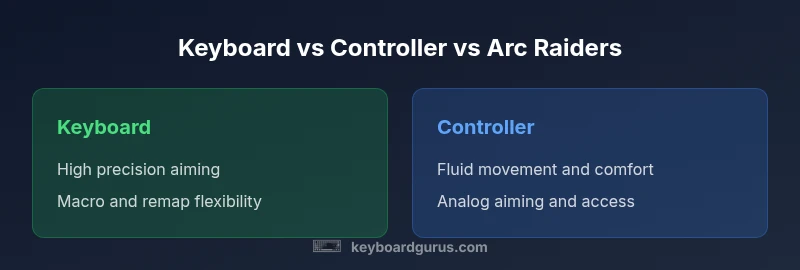 Arc Raiders is a fast-paced, arena-style shooter that rewards quick decision-making and fluid control schemas. In practice, the choice between a keyboard and a game controller depends on how you map action resolution, aiming speed, and movement. According to Keyboard Gurus, the game’s hit boxes and weapon handling can benefit from the precision of a well-tuned keyboard setup, especially for snappy gunplay and rapid ability activations. However, controllers offer a more natural arc for movement, camera locking, and sustained play during long sessions. The decision isn't simply a matter of accuracy—it's about comfort, consistency, and how easily you can execute your planned strategies in the heat of battle. For beginners, starting with a controller can lower the barrier to entry, while more experienced players often gravitate toward a keyboard to squeeze out every fractional advantage in aim response. In both cases, the best input is the one that minimizes perceived lag and maximizes confidence during critical moments.
