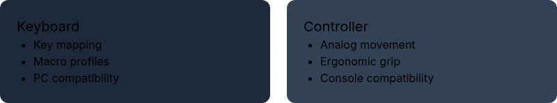 | Best for | Precision, macros, and long-term customization on PC | Fluid movement, console play, and comfort |