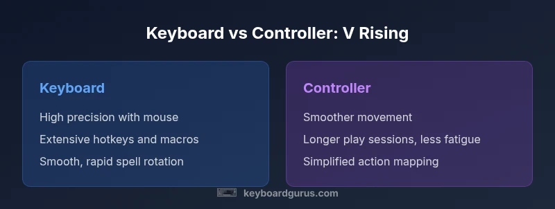 V Rising is a PC-focused survival game that rewards fast decision-making and precise control. In this context, the input device you choose can significantly influence your responsiveness in combat, how quickly you can switch between spells and items, and how comfortably you can play for extended periods. Keyboard-and-mouse setups excel at rapid hotkey execution and fine-grained aiming, while controllers offer smoother, more intuitive analog movement and a single-device solution for long sessions. According to Keyboard Gurus, the decision should align with your playstyle, hardware, and comfort level. This article unpacks the nuances, offering guidance for players who want a data-informed way to decide which setup best suits their goals in 2026.