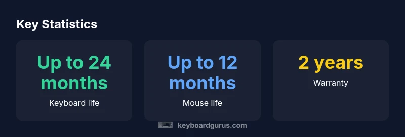 Keyboard life is up to 24 months and the mouse up to 12 months under typical use. To maximize longevity, keep the receiver in place and avoid unnecessary wireless activity when not needed.