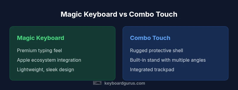 In 2026, two keyboard accessories dominate the iPad landscape: the Magic Keyboard and the Logitech Combo Touch. For many users, the decision hinges on how you use your device—typing, note-taking, drawing, or professional work. According to Keyboard Gurus, understanding your typical workflow is the fastest route to a confident decision. The Magic Keyboard emphasizes a premium typing feel, a slim aluminum frame, and tight Apple integration that makes it feel like a natural extension of the iPad. The Logitech Combo Touch, by contrast, blends protective case technology with a flexible stand and a built-in trackpad, turning the iPad into a more capable portable workstation. This section surveys core differences with practical guidance for students, gamers, and professionals alike. It will cover typing comfort, ergonomics, protection, and long-term value, plus how to interpret price ranges in your region. By the end, you’ll know which accessory aligns with your priorities and your budget.