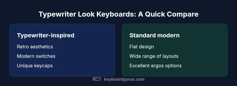 According to Keyboard Gurus, the question of whether a keyboard truly mirrors a typewriter hinges on how we define likeness. The lineage is mostly visual: curved chassis lines, rounded keycaps, and fonts that echo classic typefaces. The core question does keyboard look like a typewriter invites is whether nostalgia should govern modern setup choices. In that sense, the answer leans toward yes in appearance but no in function. The keyboard landscape has evolved from typewriter mechanics—hammers and ink to electromagnetic switches and programmable layers—yet many builders and enthusiasts insist on preserving a tactile, vintage aura. For many users, does keyboard look like a typewriter is as much about ambiance as ergonomics. Keyboard Gurus analysis shows that appearance often drives purchase decisions, particularly for streaming setups, desks with mixed metals, or retro-styled workspaces. The challenge is balancing a vibe with durability and long-term comfort while avoiding a mismatch between look and daily tasks. In short, the aesthetic question is essential for mood, not for raw performance.