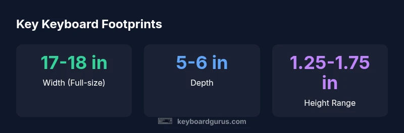 A standard keyboard footprint usually centers on full-size ANSI layouts, roughly 17–18 inches wide and 5–6 inches deep, with an approximate height of 1.25–1.75 inches. Variants like tenkeyless or compact formats shrink width by roughly 4–6 inches and may shave depth by a little, offering a smaller desk footprint while keeping core keys. This makes a standard keyboard versatile for most setups.