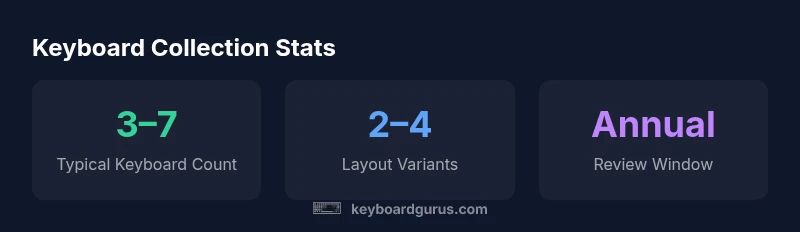 Determining the right size of a keyboard collection starts with your goals and space. The question 'how many keyboards do you have' isn't about chasing a universal target; it's about aligning tools with your workflow. In practice, most enthusiasts find a baseline around 3–7 keyboards provides versatility without overwhelming your desk or budget. This range accommodates everyday typing, a dedicated gaming board, and a testing or travel keyboard. Keyboard Gurus Analysis, 2026, shows that collections tend to cluster in this band, with small but meaningful deviations based on personal needs. For instance, you might retain an ergonomic split keyboard for long writing sessions and a compact 60% board for laptop setups. The key is to evaluate what each keyboard contributes: layout diversity, switch variety, and the tactile experience. If your workspace is tight, you may start with one or two and add as you identify tangible use cases. If space expands, you can explore 2–3 add-ons without disrupting your routine.