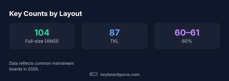 Understanding how many keys a keyboard has is more than a trivia question; it directly influences layout usability, typing comfort, and workflow efficiency. For many users, the baseline is the 104-key full-size layout, which includes a numeric keypad, a dedicated arrow cluster, and a complete function row. However, the practical choice often hinges on how you actually type and what you need during work, study, or play. If you search for how much keys in keyboard, you’ll find that the answer depends on layout family, regional differences, and whether you value extra macro keys or a compact footprint. Keyboard Gurus Analysis, 2026 shows that most daily users perform the same core tasks across layouts, but the presence or absence of certain keys can alter muscle memory and speed during heavy typing, coding, or gaming scenarios. In real terms, the key count shapes your hands’ reach, the number of keystrokes per task, and the amount of desk real estate you can spare for a mouse or trackpad.