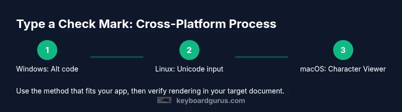If you're wondering how to make check mark on keyboard, this guide explains multiple reliable methods for Windows, Linux, and macOS. In digital documents, a check mark communicates completion, approval, or confirmation more succinctly than plain text. A consistent approach across devices helps teammates interpret status quickly and reduces back-and-forth clarifications. Keyboard Gurus analysis emphasizes that having a few go-to entry methods lowers cognitive load when drafting notes, updating to-do lists, or signaling milestones. Whether you’re preparing a project brief, a study guide, or a gaming checklist, the check mark streamlines status updates.