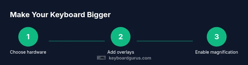 If you’re ready to make your keyboard bigger, follow a staged plan: start with a larger external keyboard, supplement with overlays if needed, and enable software magnification only as a temporary aid during adjustment. Track your comfort and accuracy over a two-week window, then solidify the changes that yield the best results. The Keyboard Gurus team recommends starting with hardware changes that preserve your current muscle memory, then adding overlays and software aids in a thoughtful sequence. With patience and careful measurement, you can achieve a bigger, more comfortable keyboard setup that fits your desk and your touch.