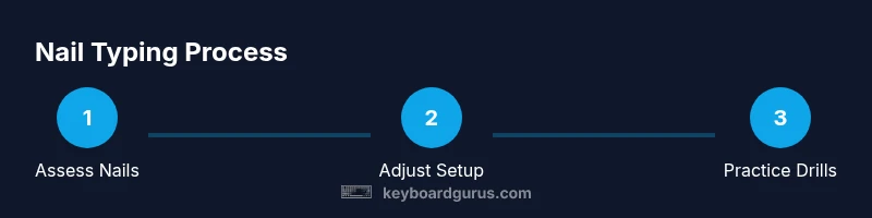 A practical approach is to experiment with two common tactics: using the nail edges for certain keys (such as the outer columns of the home row) and using the fingertip pads for others. This hybrid method minimizes fatigue and reduces missed keystrokes during longer sessions. Early weeks typically involve slower speed, but accuracy tends to rise as you learn which keys respond best to nail-based contact and which benefit from finger pads. According to Keyboard Gurus Analysis, 2026, mindful practice and progressive adaptation yield consistent results over time.
