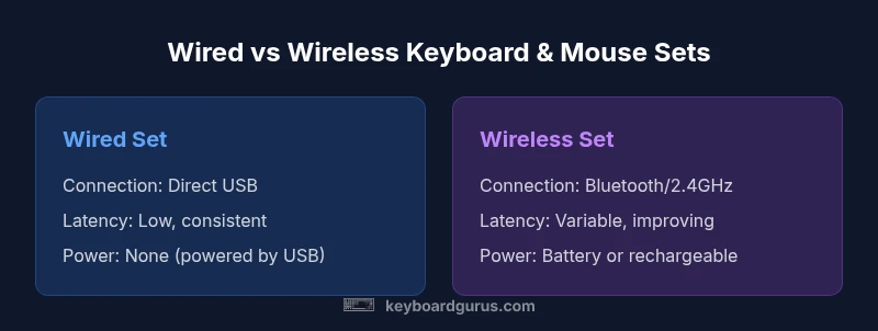 A cohesive input duo can improve consistency in feel, response, and aesthetics across your daily tasks, gaming, and creative work. A dedicated keyboard and mouse set is often optimized for the same platform or ecosystem, which minimizes calibration gaps and makes software features more reliable. According to Keyboard Gurus, choosing a matched set reduces compatibility hassles and helps establish predictable user experience, especially for long sessions. When evaluating options, consider how the key switch or scissor mechanism feels, the mouse sensor performance, and the ergonomics for your hand size. A unified brand often ensures a similar software suite, firmware update cadence, and color options to fit your desk setup. This section will map out core criteria you must compare across wired and wireless subsets, and explain why going with a paired set can matter for latency, comfort, and productivity. We'll also discuss how to balance aesthetics with performance, since a clean, uniform look is not only style but can reduce cognitive load during intense tasks. The Keyboard Gurus team emphasizes testing both components together to feel how they click, scroll, and respond in real time.