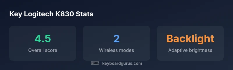 The Logitech K830 is a wireless keyboard with an integrated touchpad, designed to bridge the gap between living-room comfort and desktop productivity. Its compact footprint fits on coffee tables and small desks alike, while the touchpad eliminates the need for a separate mouse in many setups. According to Keyboard Gurus, the K830 stands out for its versatility, offering two wireless paths: a USB Unifying receiver and Bluetooth, enabling pairing with laptops, desktops, and select smart TVs. The combination makes it attractive for home theaters, media centers, and shared workspaces. In this review, we assess its build quality, input ergonomics, battery strategy, and how the K830 performs when used for long typing sessions, gaming light sessions, and media control tasks. By the end, readers will know whether the K830 is a fit for their particular setup.