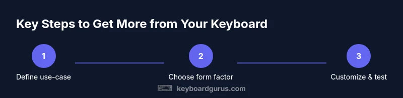 People use keyboards in three broad worlds: productivity, gaming, and creative work. For productivity, the focus is speed, accuracy, and minimal finger travel. For gaming, repeatable action combos, low latency, and reliable key registration matter most. For creativity, ergonomic comfort, macro flexibility, and multi-layer layouts unlock new workflows like video editing or music production. Keyboard Gurus analysis shows that choosing a keyboard and layout tailored to your primary workflow yields the biggest returns in day-to-day performance. For example, a compact layout reduces reach and helps with portability, while a full-size board with dedicated media keys supports longer sessions without leaving the home row. In practice, start with your most common tasks: writing, data work, or coding; map your most-used shortcuts to easily reachable keys; and test different layouts to see what reduces your cognitive load. Consider whether you want hot-swappable switches so you can tune feel and noise without replacing the whole board. Finally, weigh wireless versus wired connectivity based on space, latency tolerance, and compatibility.