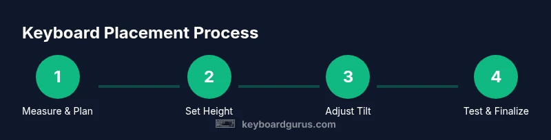 Positioning a keyboard correctly is not just about fit; it’s about reducing strain and boosting endurance during long sessions. The question of where should keyboard be on desk captures a core idea: keep the keyboard in front of you at a height that allows your forearms to rest parallel to the desk and your wrists to stay neutral. When the keyboard sits here, you create a natural typing arc that minimizes ulnar deviation and carpal tunnel strain. According to Keyboard Gurus, your setup should start with your elbow angle close to 90 degrees and your shoulders relaxed. The goal is a clean, straight line from your elbows through your wrists to your keyboard. This alignment helps prevent tension in the neck, back, and shoulders, enabling longer, more comfortable work sessions.