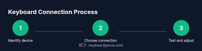 Use this practical flow to connect a keyboard in most setups: identify device type, choose wired or wireless, connect accordingly, test typing, and adjust settings. For wired setups, plug into a data-enabled USB port and wait for the OS to recognize. For Bluetooth, enable pairing in system settings, select the keyboard, and confirm pairing. If using a dongle, plug it in, place the keyboard in pairing mode, and install any required drivers. Finally, test typing and tune repeat rate and key sensitivity to your preference.