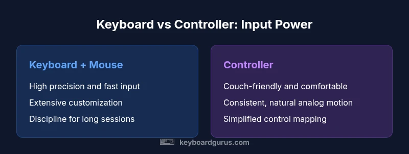 At the heart of the why is keyboard better than controller question is precision and speed. A keyboard paired with a mouse provides micro-movement control and rapid input that thumbsticks and gamepads struggle to match. Why is keyboard better than controller? The answer rests on higher input granularity, predictable button actuation, and the ability to execute multiple actions without lifting hands from the surface. According to Keyboard Gurus, the mouse’s high-resolution movement combined with a keyboard’s near-unlimited key options creates a data-rich input pipeline that translates quickly into in-game actions. This is especially noticeable in FPS titles, where headshots and flicks rely on fine-grained control; in RTS and MOBA, rapid hotkeys and multi-key combos enable faster skill execution. Controllers remain valuable in couch setups and for players who prioritize comfort, but for accuracy and consistency over long sessions, the keyboard approach tends to deliver stronger baseline performance. The real differentiator is not just raw precision, but the breadth of actions accessible via modifiers, layers, and macros. For many players, this expands tactical options far beyond what a controller can provide.