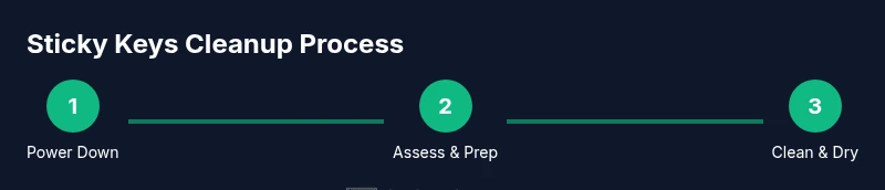 To fix sticky keys on a keyboard, power down and unplug, then remove removable keycaps if possible. Use compressed air to dislodge debris, wipe with isopropyl alcohol on a microfiber swab, brush stubborn residue, and reattach caps. Test keys gently and repeat if needed. For non-removable keyboards, use a brush and compressed air around the edges, then wipe with alcohol.
