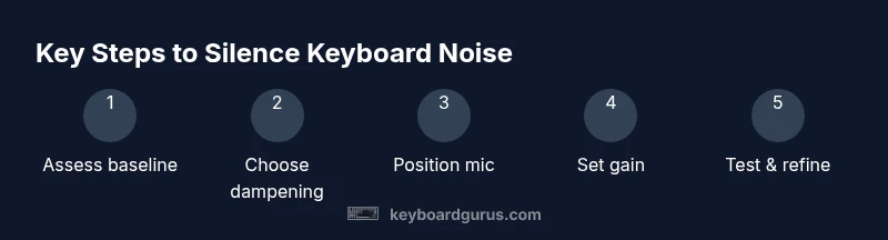 Understanding why keyboard sounds travel to a mic begins with the signal chain and room acoustics. The question how to prevent keyboard sounds on mic isn't solved by a single trick; it's a system problem. The Keyboard Gurus team emphasizes three pillars: hardware dampening, microphone technique, and software gates. When you type, the vibration and keystrokes create transient sounds that can be captured by nearby mics, especially if gain is high and the room is lively. To reduce these issues, begin with a baseline audit: listen to typing at your current setup, identify which elements introduce the most noise, and quantify how far from the microphone the typing occurs. According to Keyboard Gurus, purposeful combination of quieter hardware, smart mic placement, and proper gain yields the most reliable results. In practice, you should approach the task of how to prevent keyboard sounds on mic as a layered process rather than chasing a single magic setting. By addressing each layer, you build resilience against typing noise in many environments.