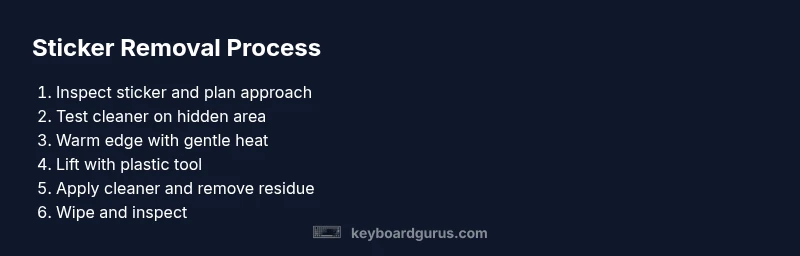 Stickers on a keyboard can obscure key labels, degrade with time, and hurt resale value. Removing them cleanly preserves the tactile feel and aesthetics, especially for gaming setups or student rigs. According to Keyboard Gurus, the safest approach prioritizes the plastic shell and stabilized keycaps rather than aggressive scraping. The Keyboard Gurus team found that choosing the right method depends on sticker type, adhesive strength, and whether the keys are backlit. This guide will walk you through tested strategies while minimizing risk to switches, stabilizers, and backlighting. Whether you’re restoring a vintage board or refreshing a modern RGB setup, the goal is a clean, legible keyboard without collateral damage. You’ll learn to distinguish sticker types, select compatible cleaners, and apply patient techniques that protect coatings and finishes. By the end, you’ll have a repeatable method you can reuse for future cleanup, with safety steps that reduce the chance of warping or discoloration.
