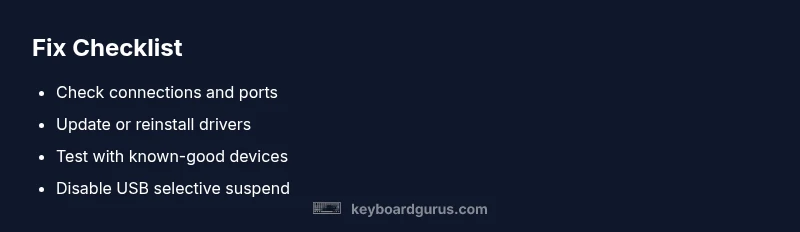 Urgent, practical troubleshooting steps to diagnose and fix a keyboard and mouse not working issue. Learn common causes, a diagnostic flow, and proven fixes from Keyboard Gurus.