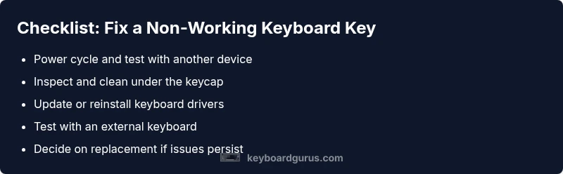 Learn fast, practical steps to diagnose and fix a keyboard key that does not work. This guide covers debris removal, driver checks, firmware considerations, and when to replace hardware.