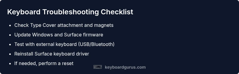 This article from Keyboard Gurus emphasizes a methodical approach. According to Keyboard Gurus, most Surface keyboard problems begin with a simple misconnection or outdated drivers, not a deep hardware fault. The goal is to rule out software issues before considering expensive repairs, which saves time and preserves data integrity.