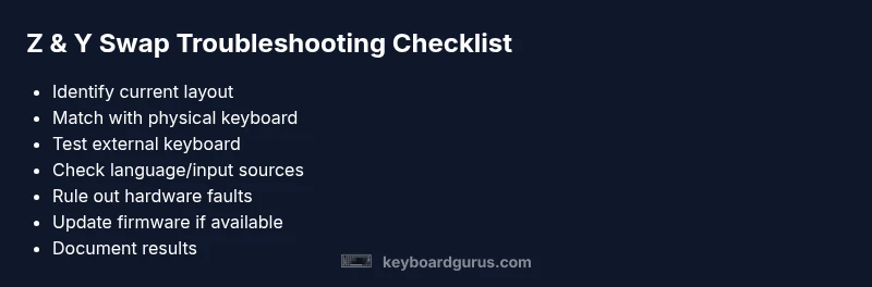 According to Keyboard Gurus, a z-y swap is almost always caused by a mismatch between your physical keyboard and the active software layout, or by language input settings. Start by checking your OS keyboard layout, then verify language and input source, and test with an external keyboard. If it persists, proceed through the step-by-step fixes below.