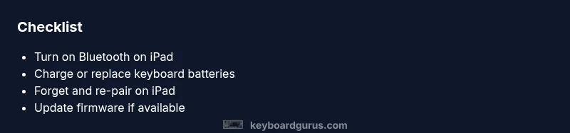 Common causes include Bluetooth being off on the iPad, the keyboard not in pairing mode, or stale Bluetooth data. Start by turning on Bluetooth, putting the keyboard into pairing mode, and re-pairing. If issues persist, try forgetting the device and resetting the keyboard before attempting again.