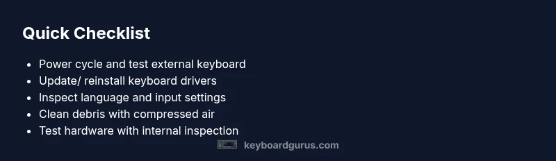 Before diving into deeper diagnostics, perform these safe checks. Reboot the laptop with no external devices attached to reset the system state. If a key remains unresponsive, try an external keyboard to confirm if the built-in keyboard is the culprit. Check for recent OS updates or driver installations that might have disrupted input devices. In Windows devices, open Device Manager and inspect the Keyboards section for warning icons. Ensure language and input settings match your keyboard layout. If you notice a language mismatch, switch to your intended layout and test typing again. If the problem persists, continue with driver updates and a clean boot.
