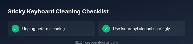 A comprehensive, urgent guide to diagnose and fix a sticky keyboard. Learn surface cleaning, deep cleaning, and prevention tips with a clear diagnostic flow, step-by-step fixes, and FAQs.