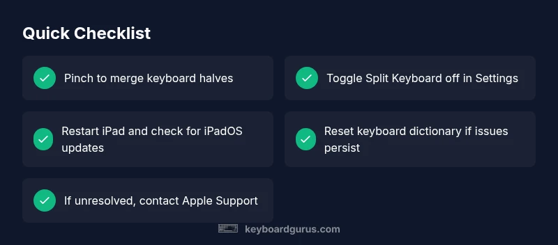 A practical, urgent guide to fix an iPad on-screen split keyboard, from merging gestures to settings checks and safe resets. Learn quick wins, diagnostic flow, and prevention from Keyboard Gurus.