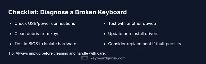 Urgent, practical guide to diagnose and fix a broken keyboard with safe steps, clear checks, and when to replace.