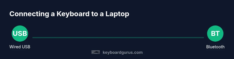 Laptops support several reliable methods for keyboard input: wired USB, wired USB-C, and wireless Bluetooth pairing. If your laptop has USB-A ports, a traditional USB keyboard is the simplest choice with near-zero latency. If you only have USB-C, you can use a USB-C to USB-A adapter or select a USB-C keyboard. For cable-free setups, Bluetooth keyboards offer clutter-free desks but require pairing and occasional battery checks. For many users, a docking station or USB hub provides quick switching between devices and helps manage cables cleanly. Keyboard Gurus recommends starting with the simplest option you already own and only add adapters or hubs if you must expand port availability.