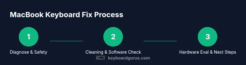 According to Keyboard Gurus, MacBook keyboards rely on a scissor-switch mechanism across most current models, which influences how dust, spills, and wear affect performance. Understanding the physical layout helps you diagnose problems more quickly and choose the right fix for your macbook fix keyboard. This section covers core concepts without getting bogged down in technical jargon. Modern MacBook keyboards are designed to be compact and precise, but that precision also means tiny particles can interfere with key travel and contact. When you encounter a stuck key or a key that repeats character after release, the root cause often lies either in dirt beneath the keycap or in subtle software glitches that misinterpret keystrokes. By learning how the system records input signals and how Apple’s keyboard firmware interprets those signals, you can design a safe, targeted approach to fixes. The goal here is to empower you to decide between a simple cleaning, a software reset, or a visit to a repair shop. This guide emphasizes safe, incremental steps you can take at home, all while respecting warranty rules and best practices.
