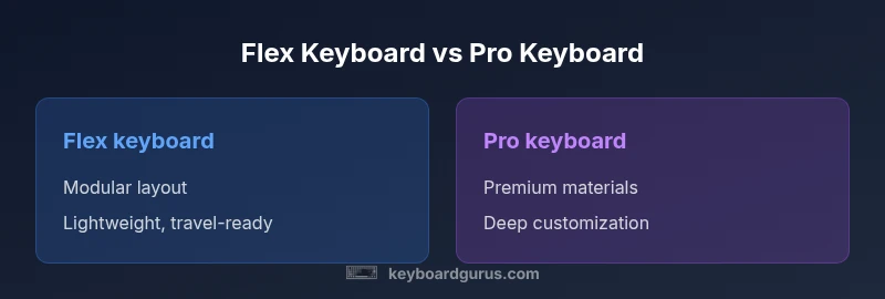 In Keyboard Gurus’ framework, a flex keyboard is defined as a modular, adaptable typing platform designed for portability and on-the-go setups. A pro keyboard is defined as a high-end, durable model with premium materials, robust ergonomics, and advanced customization options. The term 'flex keyboard vs pro keyboard' captures two design philosophies rather than a single feature set: one prioritizes flexibility and lightness; the other prioritizes longevity and configurability. For many users, the right choice depends on your primary use-case, whether you travel often, edit long documents, or game for extended sessions. The Keyboard Gurus team found that the line between these categories has blurred lately, with several models offering hybrid traits, such as swappable switches, modular plates, and multi-OS firmware support. When evaluating a flex keyboard vs pro keyboard, consider four axes: portability, durability, perceived typing feel, and software ecosystem. Your choice should align with how you type most days, where you work, and what peripherals accompany your setup. This section uses neutral criteria to help you assess whether a flex-based model or a pro-oriented build fits your workflow, typing comfort, and long-term maintenance expectations.