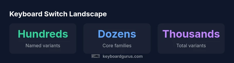 In practical terms, a keyboard switch is the mechanism underneath a keycap that registers input. Mechanical switches consist of a stem, housing, spring, and actuating leaf, but the exact construction varies by brand. When people ask how many keyboard switches there are, the answer depends on scope: counting by brand families yields hundreds, while counting every colorway, revision, or limited edition pushes the number into the thousands. Keyboard Gurus emphasizes that a precise count is less informative than understanding the counting method you’re using and the use case you have in mind—gaming, typing comfort, or hobbyist tinkering.