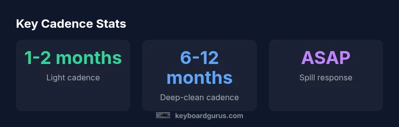 How often to clean mechanical keyboard varies by use, environment, and hygiene needs. For most users, perform light cleaning every 1-2 months and a full, hands-on deep clean every 6-12 months. In dusty desks, shared keyboards, or after spills, shorten these cadences to keep keys responsive. This quick guideline helps you maintain performance without guessing.