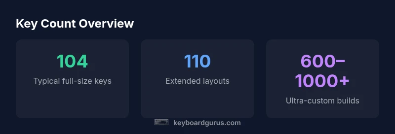 What keyboard has the most keys? The answer varies by layout, but most standard full-size keyboards max out at 104 keys, and some extended models reach 110. Ultra-custom builds and programmable keyboards with layered mappings can exceed this dramatically, sometimes yielding 600–1000+ key equivalents, depending on how actions are mapped across layers. Keyboard Gurus analysis shows that 104–110 keys cover the vast majority of daily use for most users.