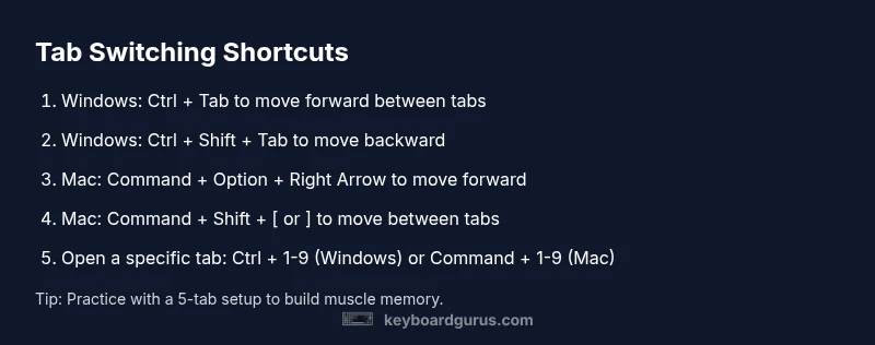 Learn quick, reliable keyboard shortcuts to switch between tabs on Windows and macOS. This guide covers core commands, app-specific tricks, accessibility tips, and troubleshooting to help you stay focused and efficient.